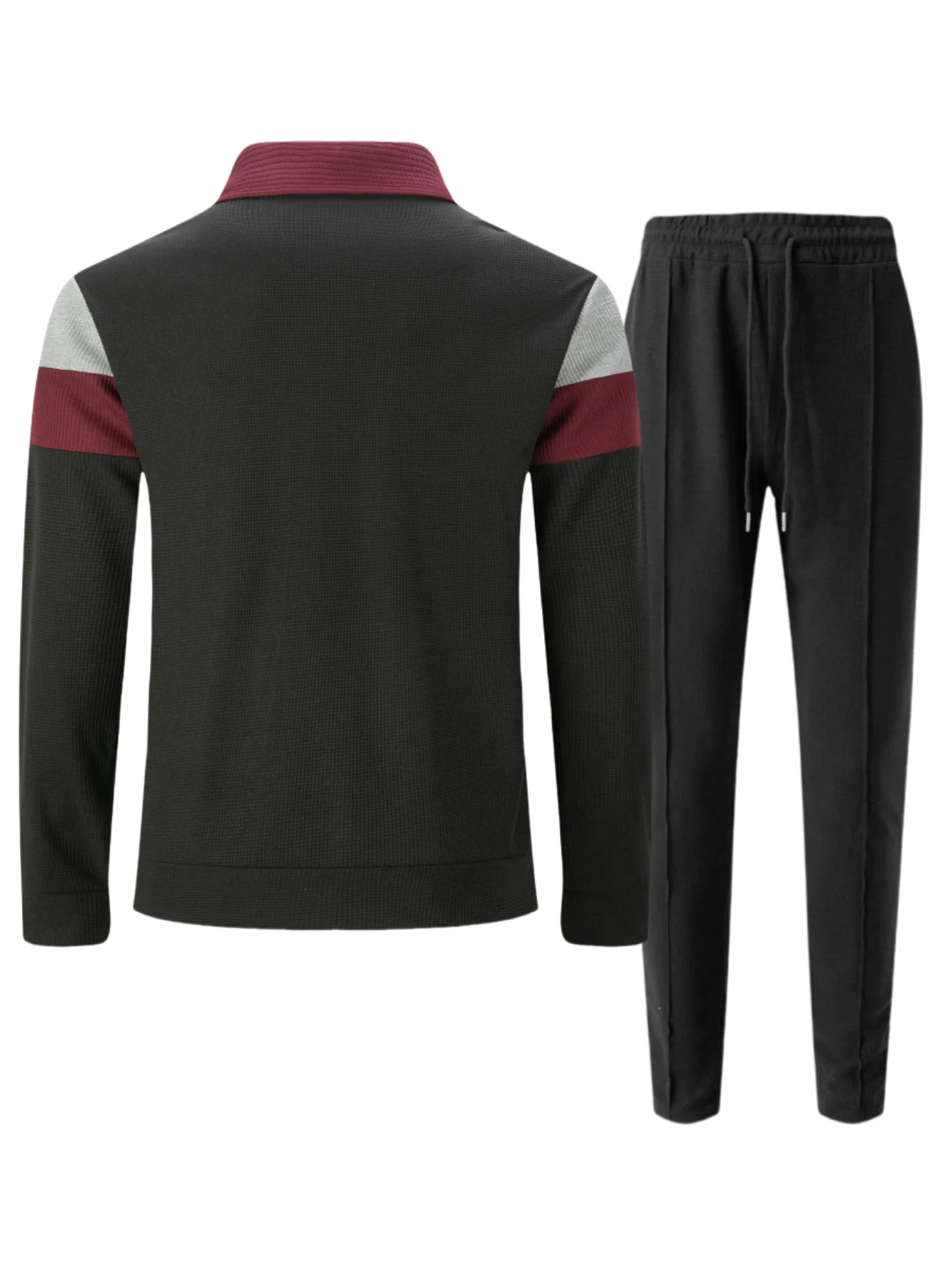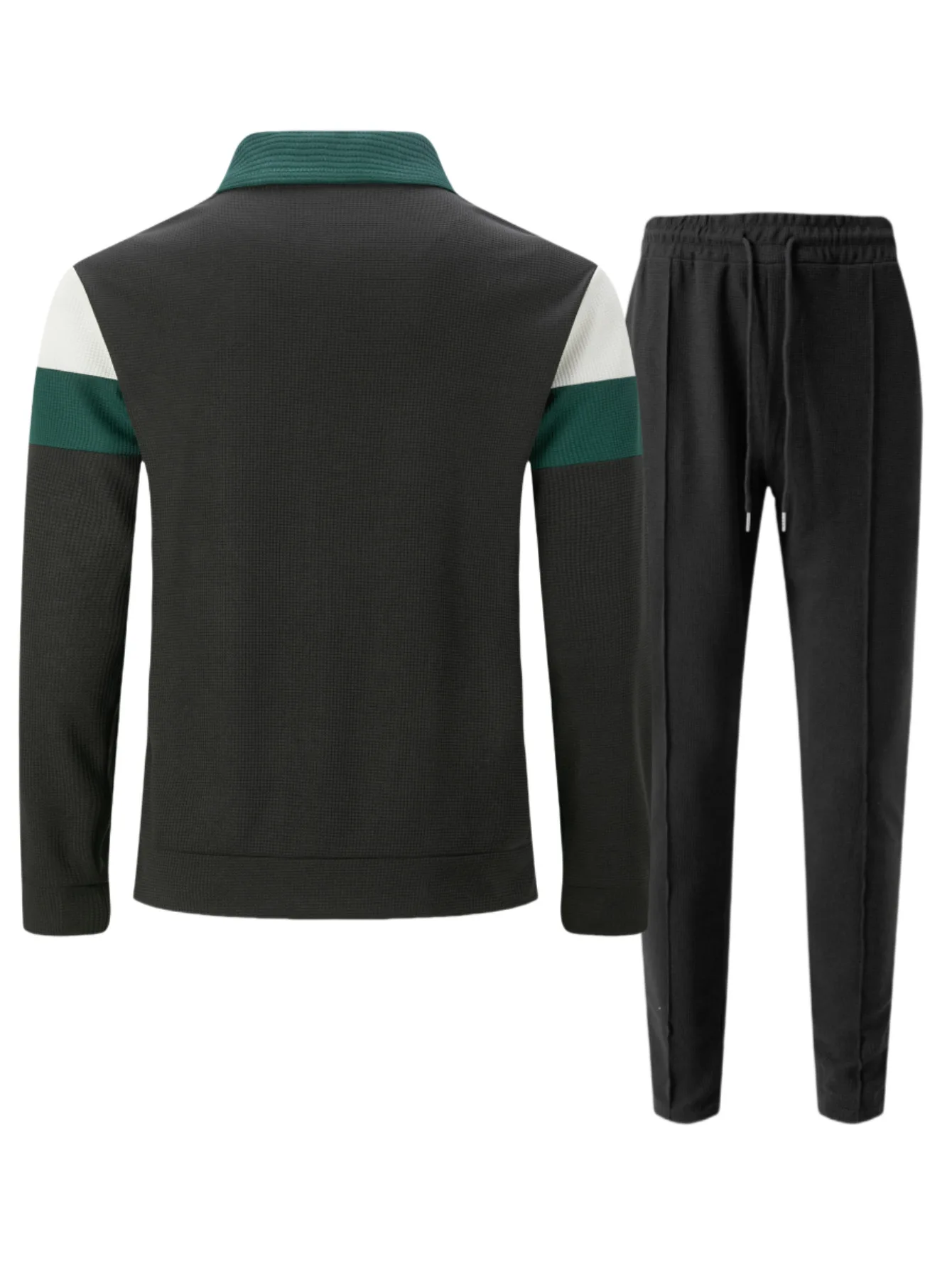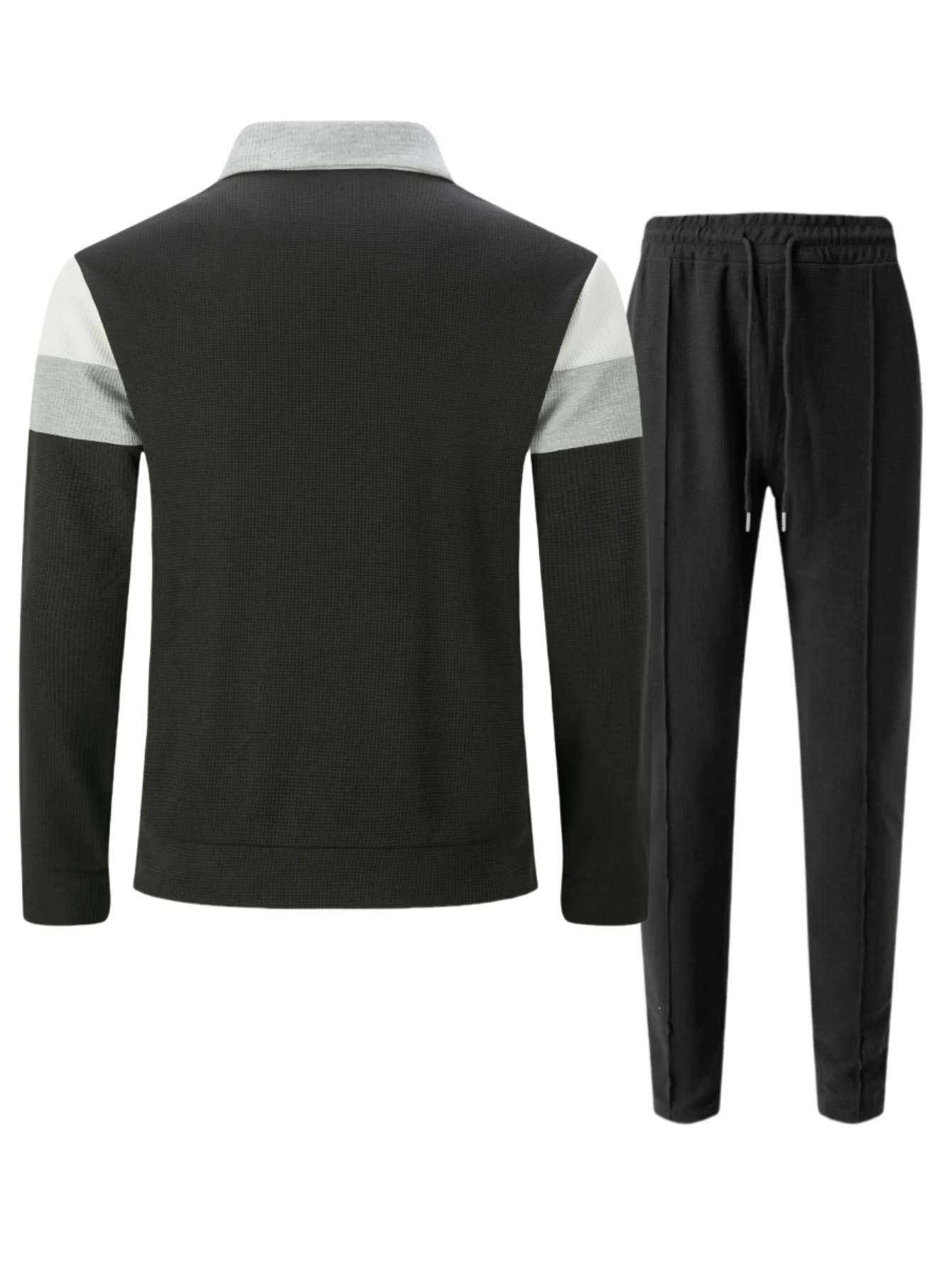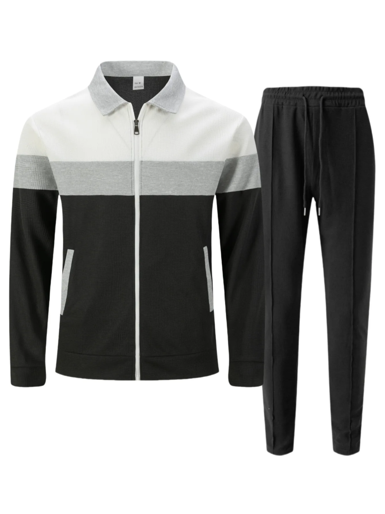 This men's set features a stylish England-style design with a notched collar and lapel pocket zippers, perfect for a casual yet fashionable look.